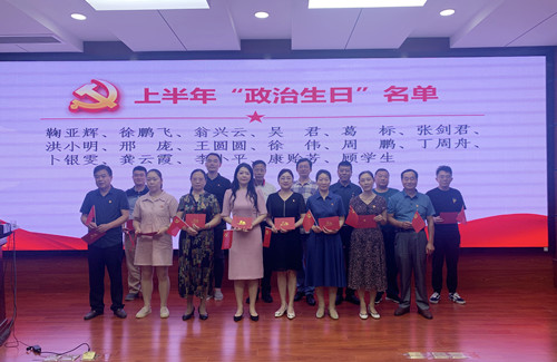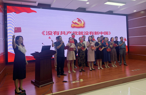 在過集體政治生日環(huán)節(jié),黨委委員為上半年入黨的同志贈送了政治生日禮物,黨員代表重讀入黨申請書、暢談體會感悟,全體人員合唱《沒有共產(chǎn)黨就沒有新中國》。