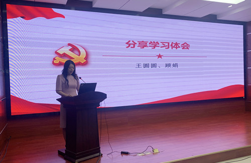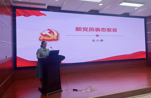 新黨員作表態(tài)發(fā)言,黨員代表圍繞“學習貫徹黨的二十大精神”主題分享學習體會。