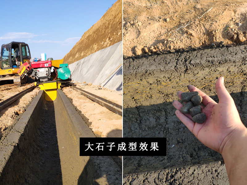 這種原材料的選擇很適合水渠成型機的,在水分控制良好的情況下?;炷撩撃3尚秃蟊砻婀饣?,幾乎無需人工收光。機器料斗下料也比較通暢。
