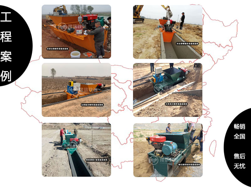 我們團隊有近4年的渠道混凝土自動化成型設備的研制經驗,我們近4年施工經驗更具價值:1、安徽濱湖新區牛角大圩、長豐縣楊廟鎮、霍邱縣2008-2012土地整治示范項目、潁上縣謝橋鎮小張莊、泗宿高速公路排水:安慶市太湖縣土地整治示范項目:合肥巢湖環湖大道排水工程2、內蒙的烏蘭浩特、赤峰、烏海;3、黑龍江的齊齊哈爾:3、吉林的松原、白城:4.新疆建設兵團農二師:5、河南的信陽、固始、新鄉、焦作、南水北調工程河南新鄭壩基排水工程;6、山東棗莊、聊城、菏澤:7、甘南的蘭州、定西、武威:8、福建的藍平;9、老撾烏德縣等地;10、湖北黃石、隨州:11、山東大連、菏澤、臨沂都有我們辛勤努力的成果,這些經驗都是我們團隊能為您提供高效售后服務的有力保證。
